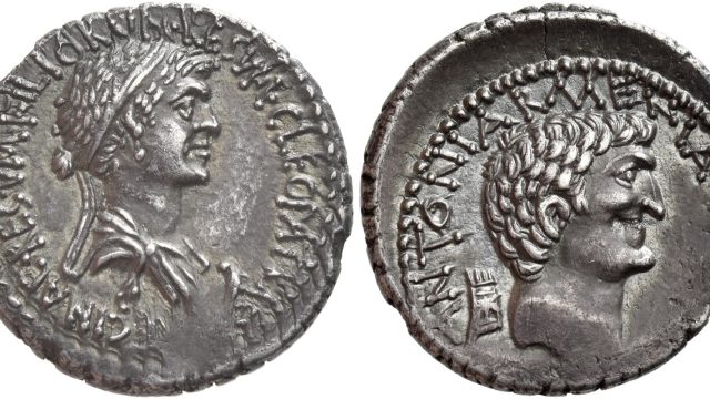 Lot 106 – Cleopatra with Marcus Antonius. Denarius, Eastern mint 34-32, AR