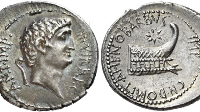 Lot 98 – M. Antonius and Cn. Domitius Ahenobarbus. Denarius, mint moving with M. Antonius 40, AR