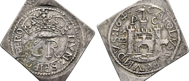 Lot 1304 – Charles I Shillings, Halfcrowns & Groats. Charles I, 1625-1649. Pontefract besieged. AR Shilling.