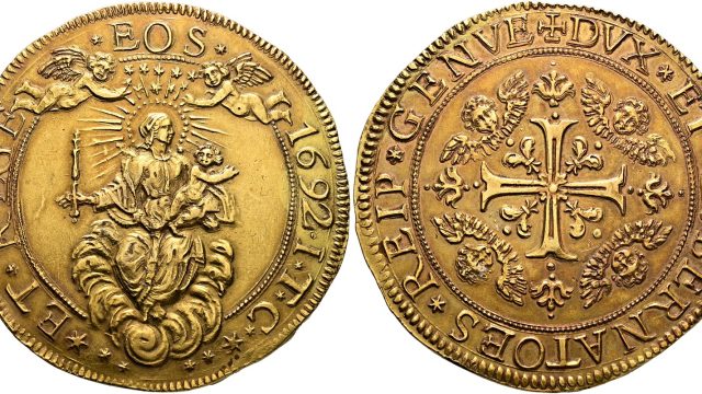 Lot 1733 – Genova. Third period: Biennale Doges 1528 – 1797. 12 ½ doppie 1692, AV