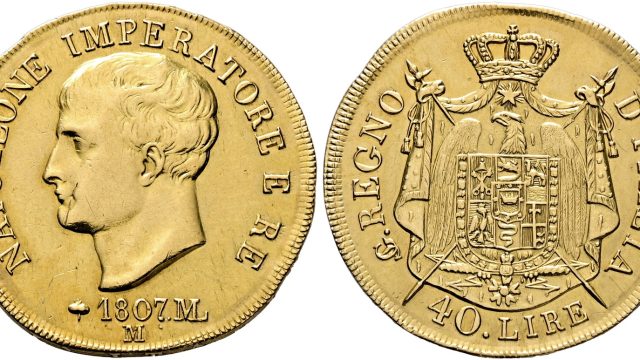 Lot 1765 – Milano. Napoleone I Emp. of the French and King of Italy, 1805 – 1814. 40 lire 1807, AV