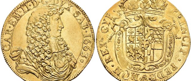 Lot 1844 – Savoia. Carlo Emanuele II alone, 1648 – 1675. 10 scudi 1663/Torino, AV