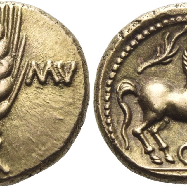 Lot 677 – Trinovantes & Catuvellauni, Catuvellauni, Cunobelin. AV Stater. Struck 8-41 AD.