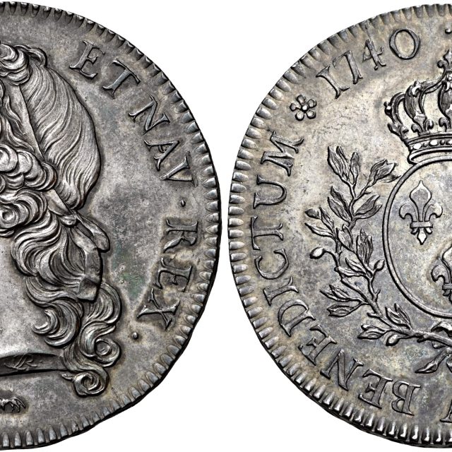 Lot 240 – FRANCIA Écu dit aux branches d’olivier et au bandeau Pre-serie 1740, A Parigi AR. 29,41g. ø41,9mm.