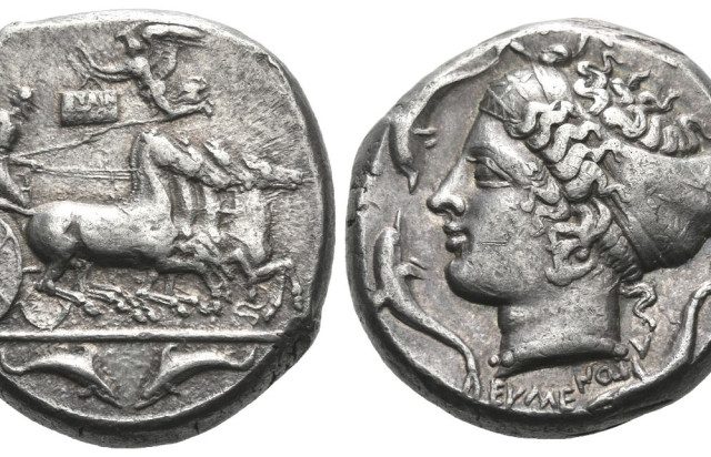 Lot 67 – Sicily, Syracuse. Tetradrachm signed by Eumenes and Euainetos circa 415-405, AR