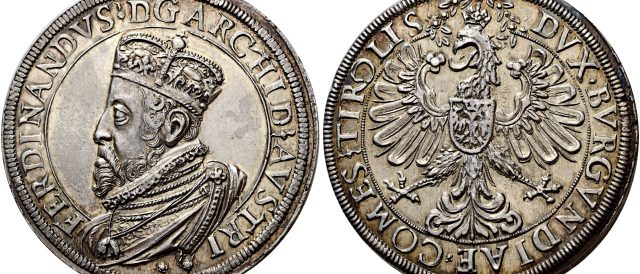 Lot 10 – AUSTRIA. Arciduca Ferdinando I d’Austria (1522-1564) DoppelterReichsTaler, Hall AR. 56,85g. ø43,6mm.